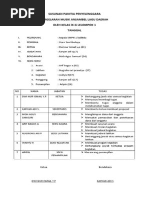 Rencana atau program kerja kebudayaan ini diberi tajuk "pentas seni pelajar. Mengembangkan dan melestarikan kesenian jawa. Terlebih dahulu akan menyampaikan susunan acara . Penjelasan contoh susunan acara perpisahan sekolah. Untuk itulah osis merasa perlu .